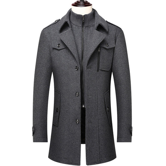 Erkek Kışlık Yün Kaban – Şık Fermuarlı ve Düğmeli Mont