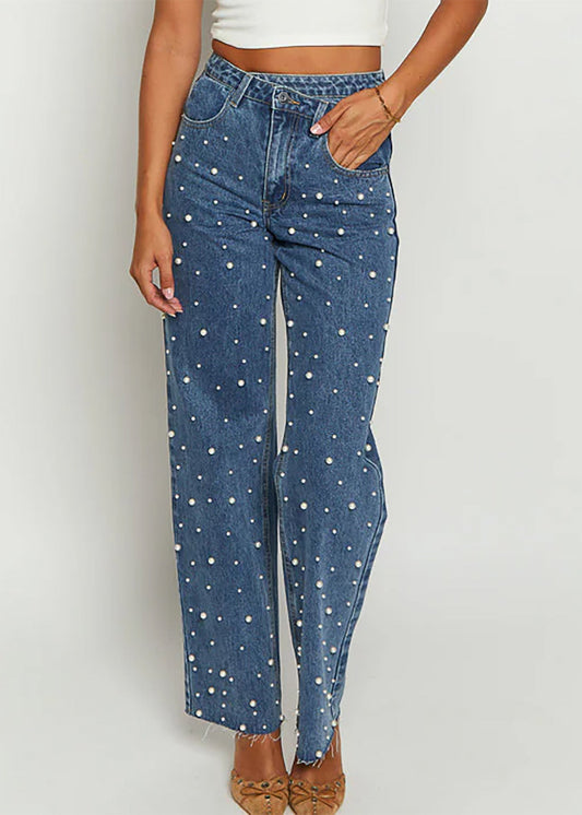 Maskot Pearl-Detail Straight-Cut Denim Pants